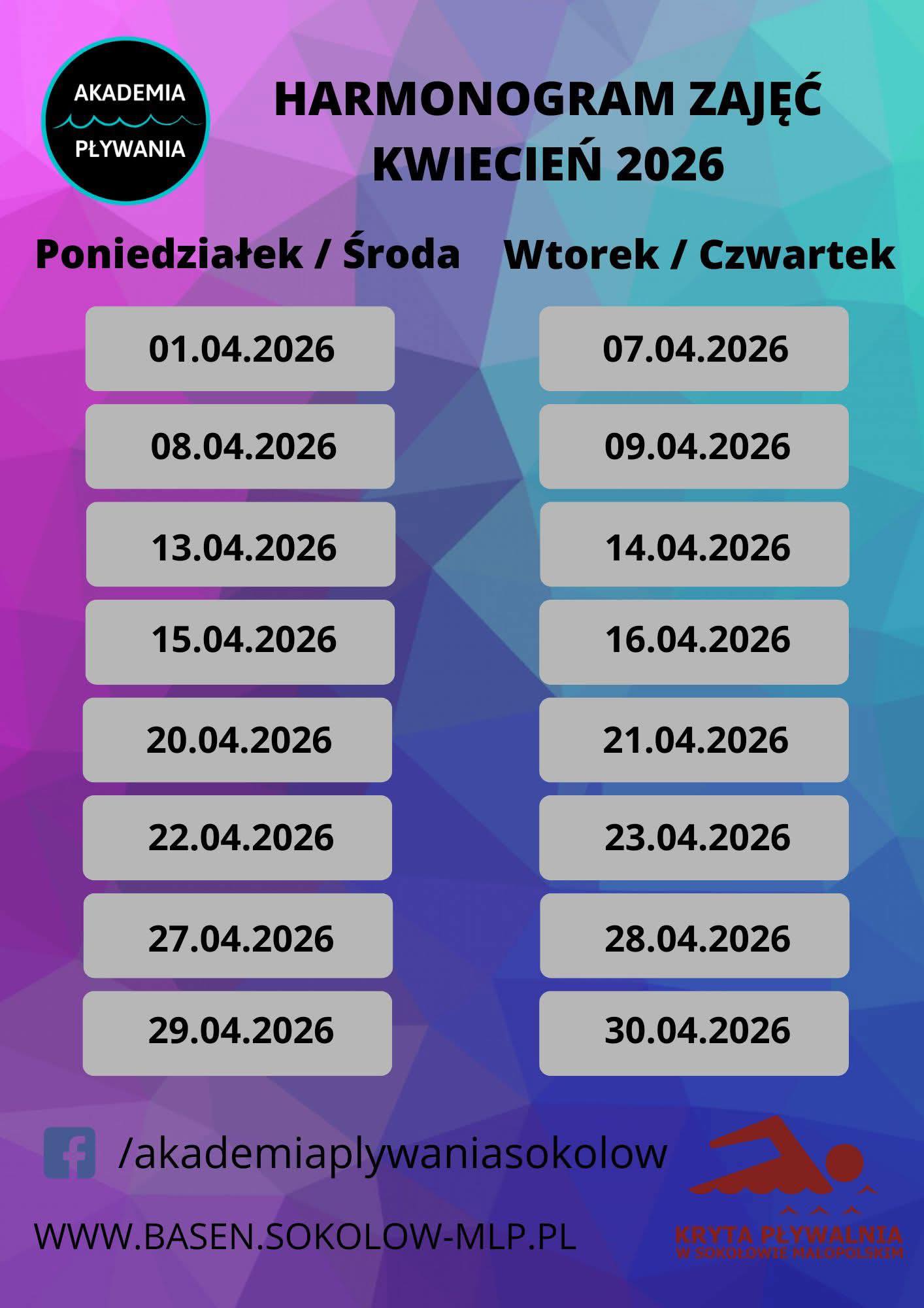 www.basen.sokolow-mlp.pl i Facebook Akademia Pływania.